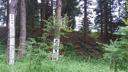 南熊井城の表示と解説 田川の河岸段丘に築かれた崖城。 南熊井城の事跡は、僅かしか見られない。城の位置関係から見て、東の北熊井城の支城として運用されたことは想像に難くない城だが、「片丘村誌」には、嘉吉2年(1442)に大和織部正の熊野井館として登場し…
