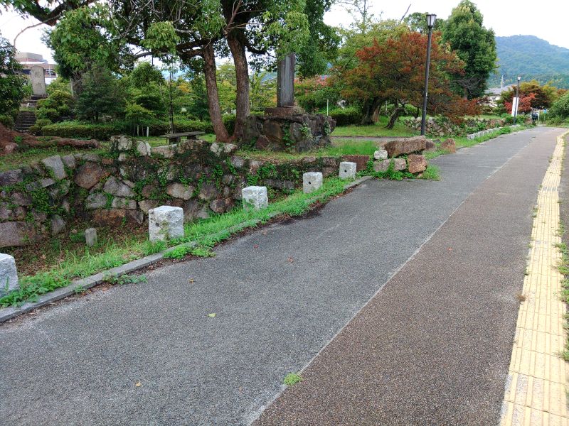 現在の城址には、隅櫓を模した彰古館が建ち、平成4年(1992)には城門も再建されているが、この2つを基にして散策しても、城の縄張がうまく把握できなかった。よくよく案内板を見てみると、城門が古地図の内堀の位置にある。どうやら、城門は跡地での復元ではなく場所も含めて模擬復元であるらしい。ただ、公園内には発掘された礎石や天守石垣などもあり、それらから往時の姿や縄張を偲ぶことができるので、遺構はよく残されている部類の城だろう。ちなみに、城門の2階と彰古館は、資料館として無料開放されている。