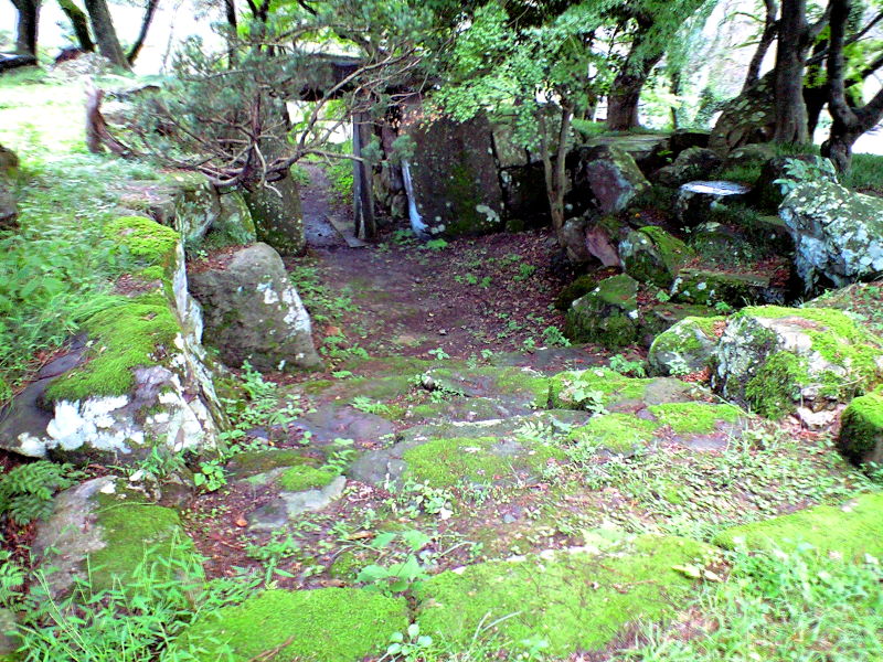 現在、城跡として残っているのは本丸部分で、高さ約7mの高台であり、その周囲には堀だったと一見して判る地形が残っていた。本丸の一部には城門の石垣が残っているが、その上には多聞櫓があったのか、それともただ塀を渡していただけなのか、埋門の形となっており、上に大きな一枚岩が石橋のように架けられている。通路の幅から考えると、大手にしては狭過ぎることから搦手門か通用門だったのだろうか。大手門でないとすれば、塀が渡されただけの埋門の可能性が高そうである。