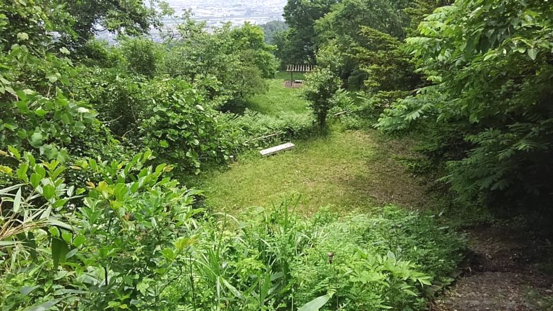 万葉ラインを上った先の現在の駐車場から、公園として整備されている細長く大きな公園に掛けてが主郭部で、その南西方向に4段ほど削平地が続いており、この辺りまでは明確に城跡と認識できるが、安田城跡資料館で貰った史料によると、そこから先にも万葉ラインに沿って比較的大きな削平地があるようだ。ここまでの範囲を考えると、越中の三大山城としての規模にも納得がいく。ただし、公園として整備されてしまっているため、最高部は公園としての趣が強く、その南西方向の郭と本丸の切岸が最も城らしさを残している部分だろうか。