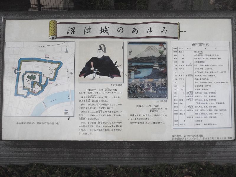 その後、沼津城は、維新後に沼津兵学校として使われていたが、明治5年(1872)に払い下げで解体され、翌年には廃城令で正式に廃城処分となり、城地も次第に市街地に没していった。