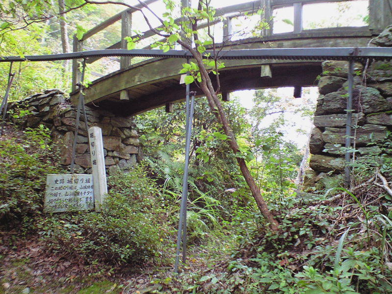 登城口の所には冠木門があり、遊歩道沿いには柵や堀切、逆茂木、狭間といった城の構造物が実物付きで説明されていて、城に詳しい人が主導して整備したようだ。また、城の遺構ではないが、田尾城の登城口のすぐ前には、元親が田尾城攻略の指揮を執った指揮所が残っている。この指揮所から城を見ると、まさしく峻険としか言いようが無く、当時の過酷な攻城が容易に想像でき、ただただ感嘆するばかりだった。